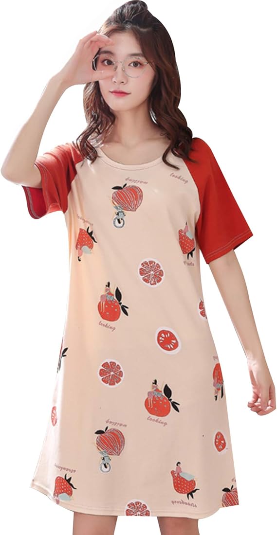 Amazon パジャマ ルームワンピース ネグリジェ 半袖 Unifizz ワンピース ルームウェア レディース 女の子 夏用 綿 膝上 丸首 可愛い セクシー 猫 動物 果物 熊 カジュアル 部屋着 プルオーバー 中学生 プレゼント Pajamas For Women ルームワンピース ネグリジェ 通販